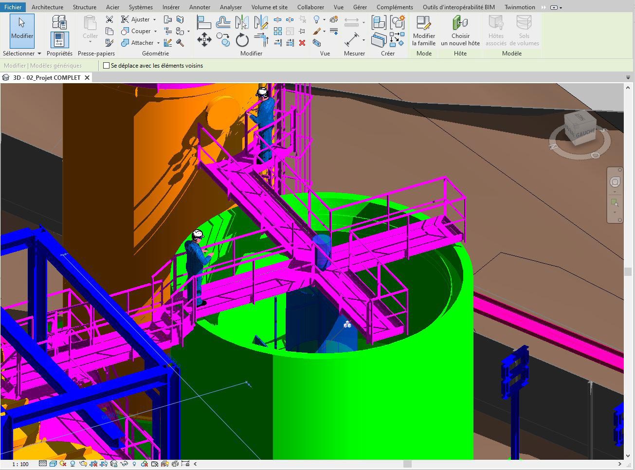 Mr Thivolle : Nous nous obligeons à travailler sur Revit et à réaliser le maximum de projets avec cette solution, car il faut passer du temps sur un logiciel pour savoir l’utiliser au mieux, ce qui est encore plus vrai pour Revit. Plus nous serons efficaces sur ce logiciel et plus nous gagnerons du temps. Auparavant, nous faisions peu de tuyauterie et le passage à la 3D nous apporte également un gain de temps important dans ce domaine. Dès que l’on rentre dans le cheminement de tuyauterie, la 3D devient incontournable, car on se retrouve très vite avec plus de mille coupes. Revit, c’est une aventure dans laquelle j’ai entraîné mes collaborateurs et aujourd’hui, ils sont de plus en plus conscients de ses possibilités.
